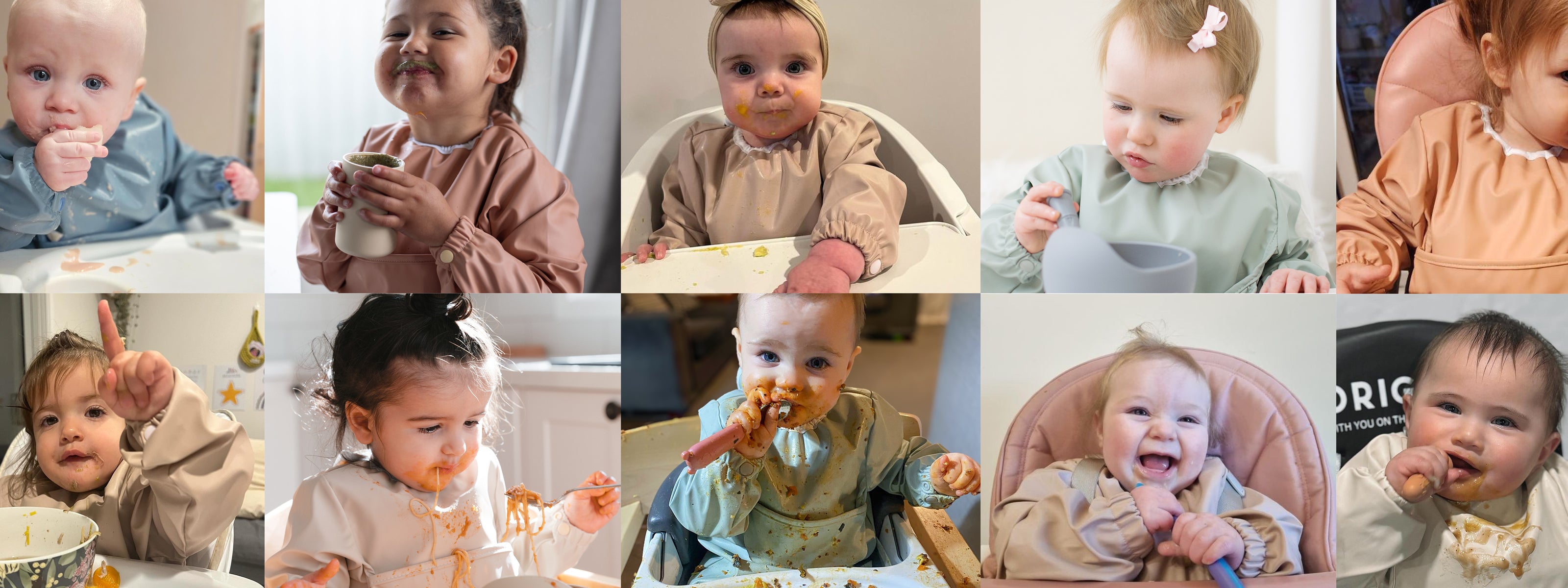 So are we. We're proud to have developed a long-sleeved bib with the best fit on the market. Featuring a stretchy adjustable dome neckline and adjustable cuffs that stop mess in its tracks while growing with your little one and keeping them comfortable.